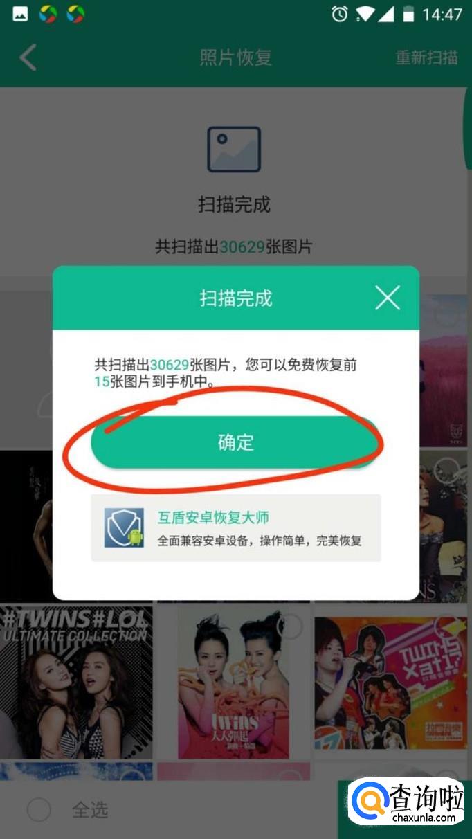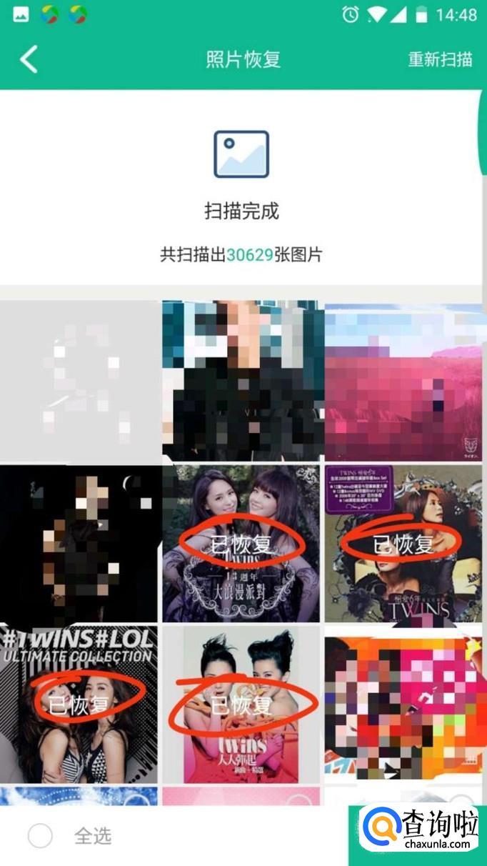 等待一段时间,当扫描成功,系统会提示扫描成功,点击“确定”,此时会出现所有删除掉的图片,勾选需要恢复的图片,点击下方“恢复数据”,如果数据恢复,在本来勾选的图片上面,就会出现“已恢复”的字样