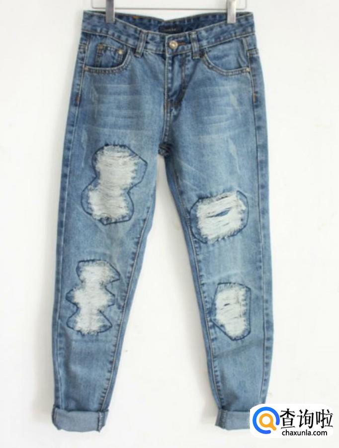 宽松破洞牛仔裤。时尚休闲,适合到处游玩。