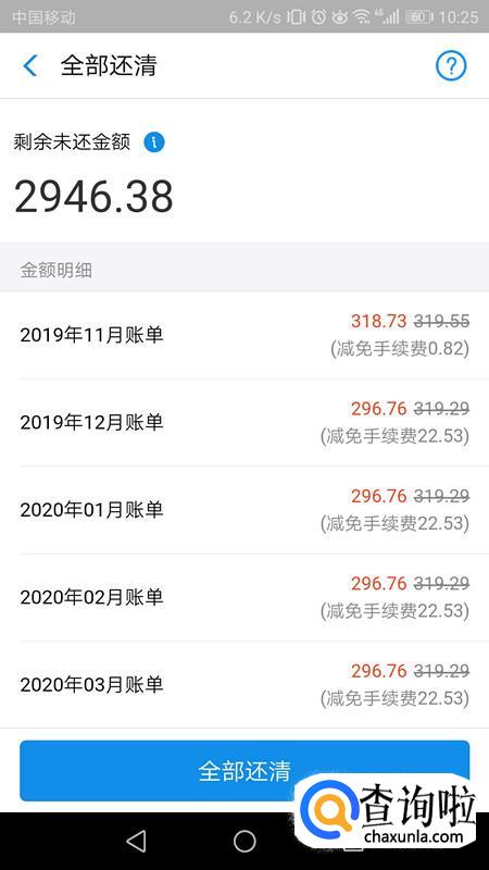 最后花呗的全部账单就出来了,点击全部还清就可以提前一次性全部还清了。