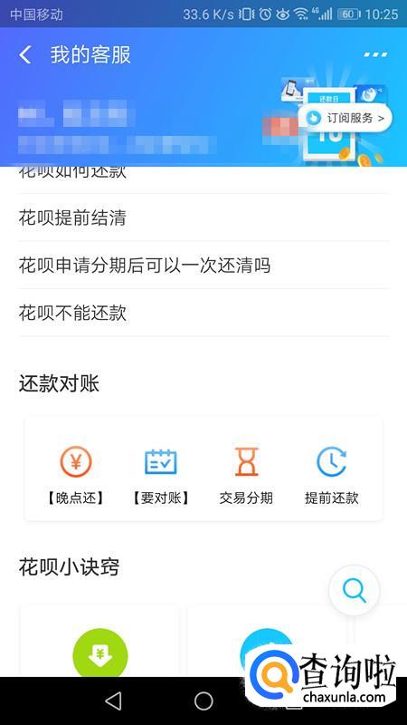 这时候进入花呗的客服,在里面找到提前还款,点击进入。
