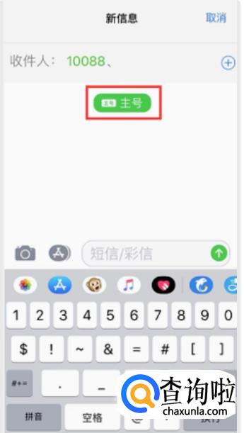 然后,我们手动输入一个收件人的电话号码,(我们这里随便以10088号码为例)。然后收件人号码框下面就会出现“主号”的字样。