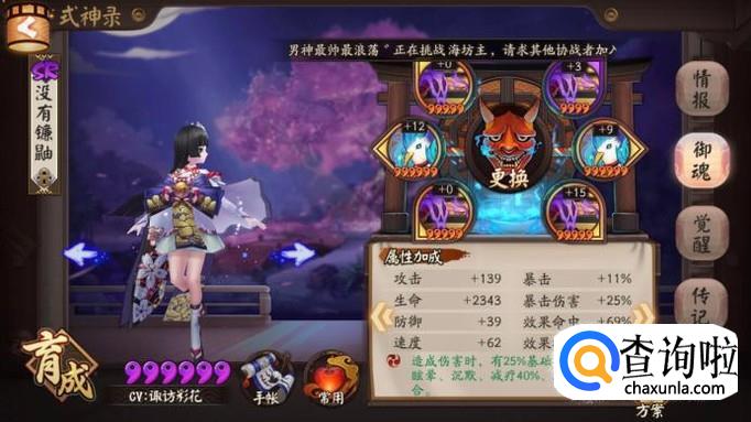 阴阳师游戏,式神雪女,御魂