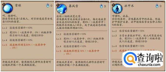 首先我们先了解一下雪女的情报和它的技能。