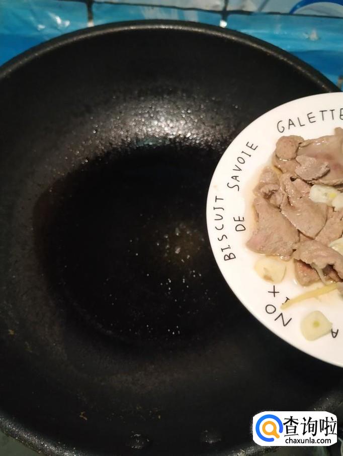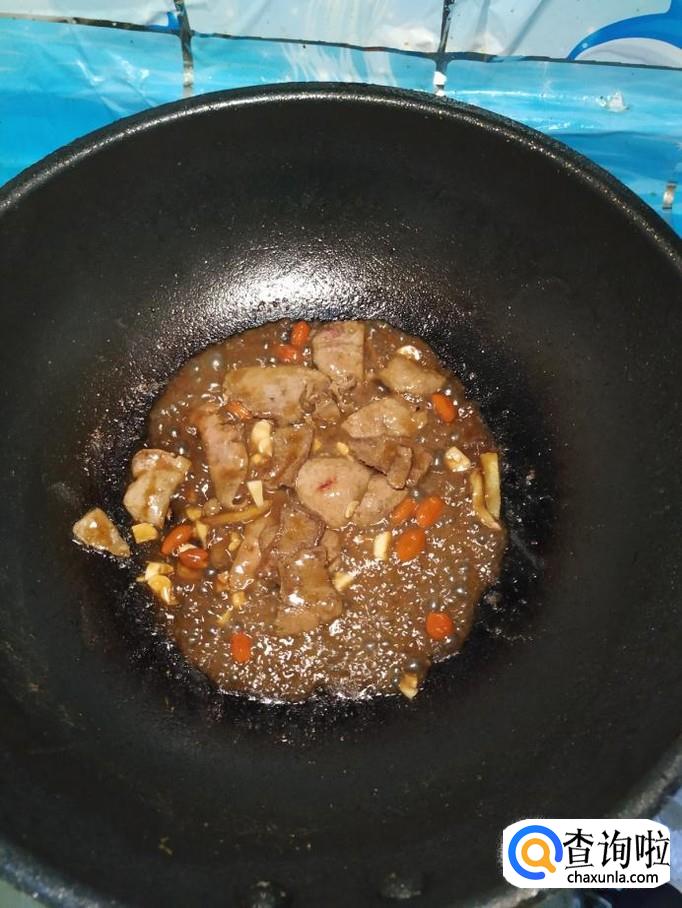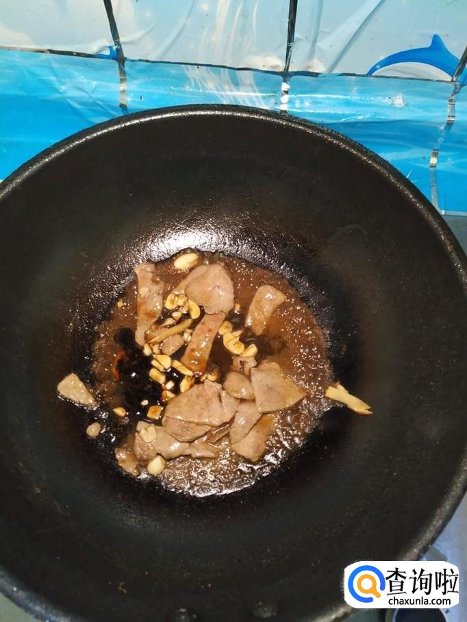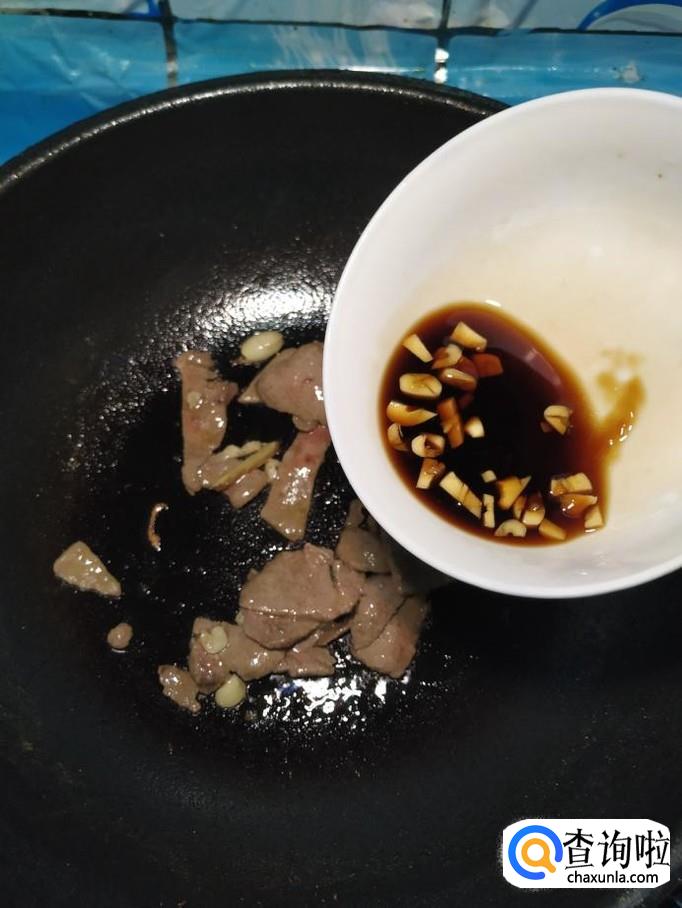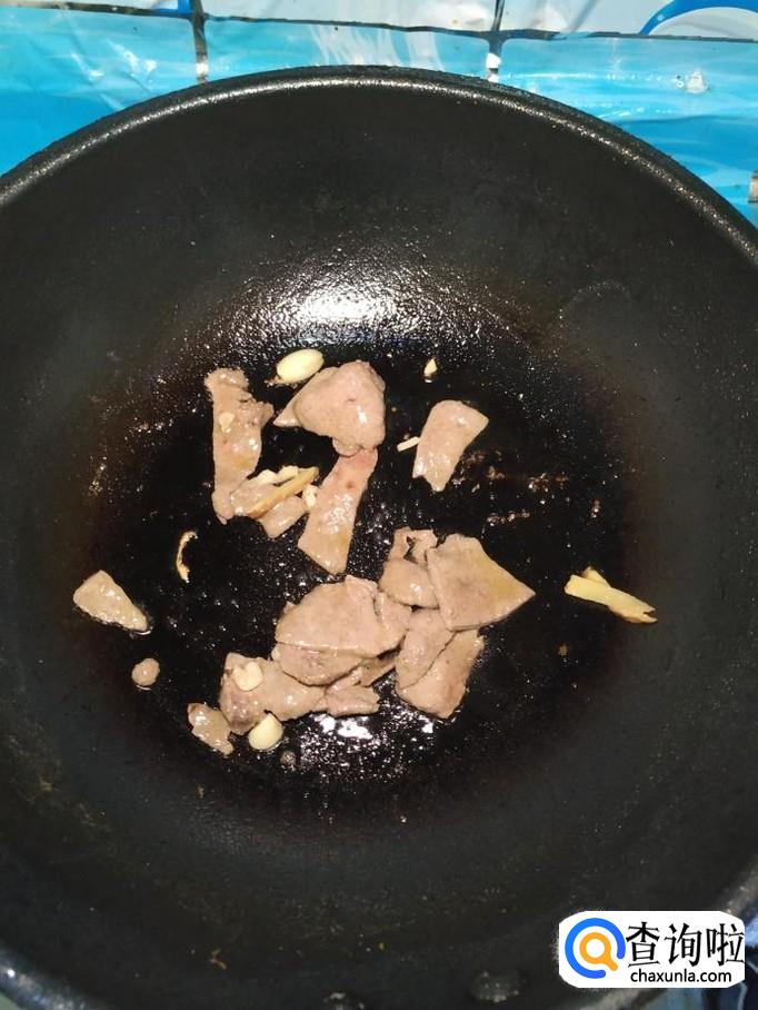 炒锅中放入适量油,油热后将猪肝放入锅中,翻炒均匀。