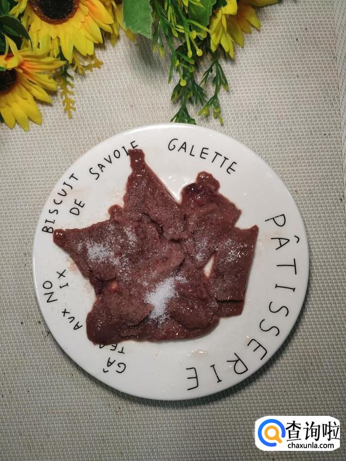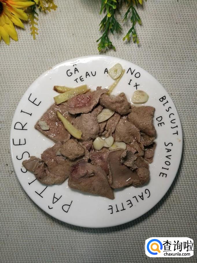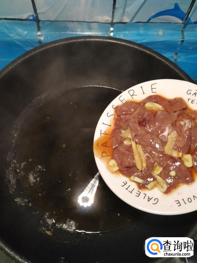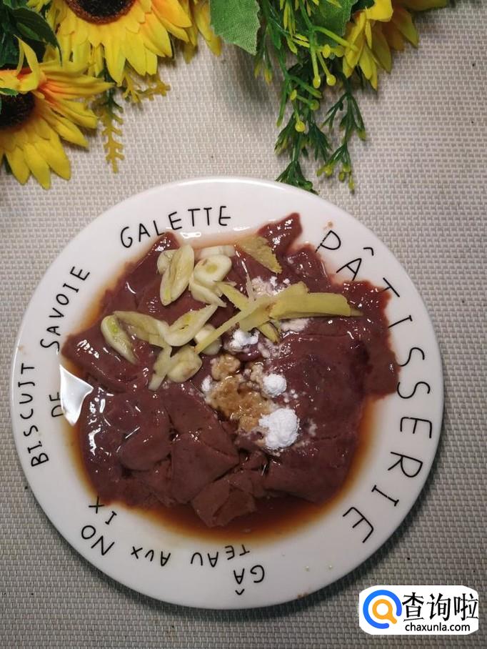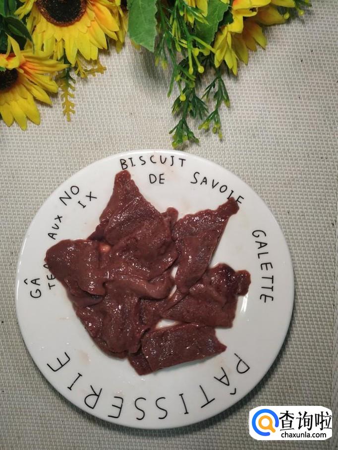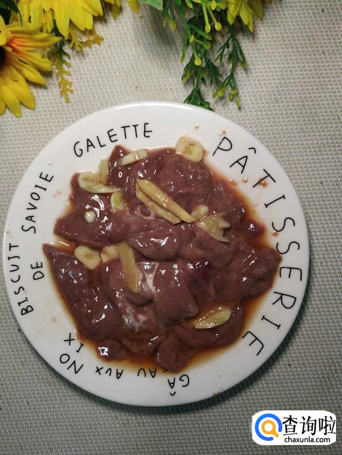 准备适量猪肝,将猪肝用清水洗净,切成片,撒入盐,腌一会儿,然后将盐分洗去。