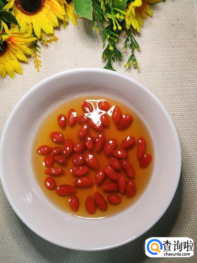 将提前泡好的枸杞子倒入锅中,这样可以增加菜肴的营养。
