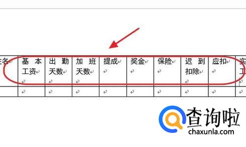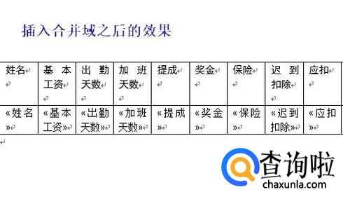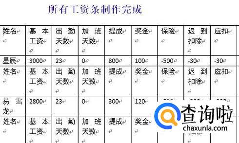 从Excel员工数据上看到,工资表的内容共包含姓名、基本工资等内容10项,所以我们新建一个10列、2行的表格,然后在第一行按照Excel的内容对应的复制下来,如图二...