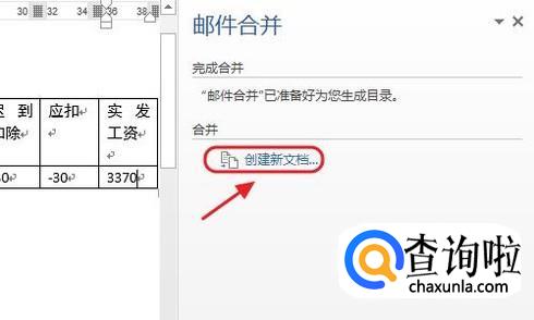 最后我们点击下一步一直到最后一步,点击右侧的“创建新文档”-“全部”,这样所有员工的工资条就制作完成了,效果如图三...