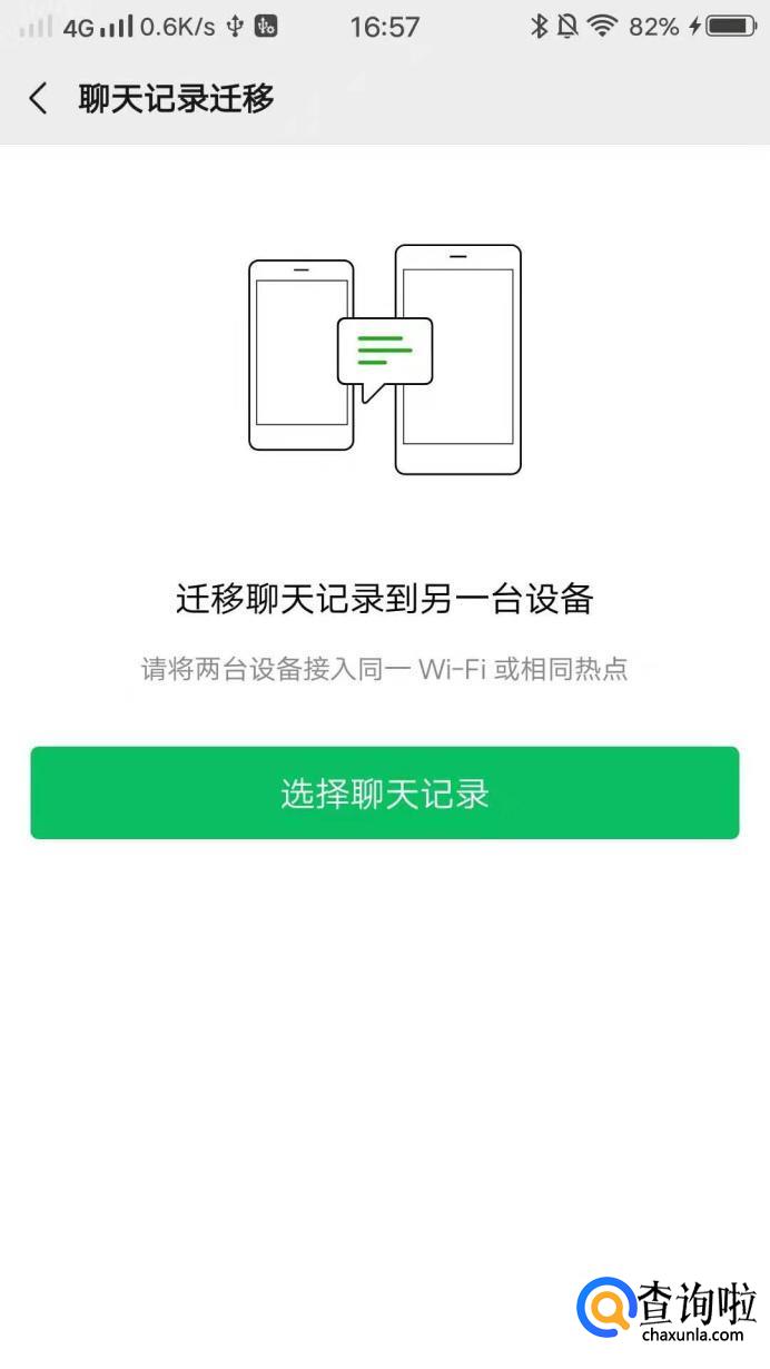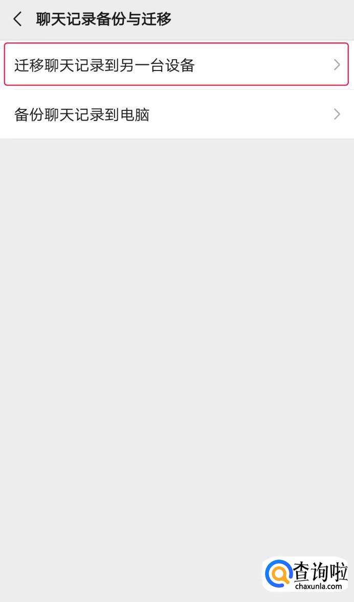 这时会看到有迁移到新手机和备份到电脑,我们选择前者“迁移聊天记录到另一台设备”。