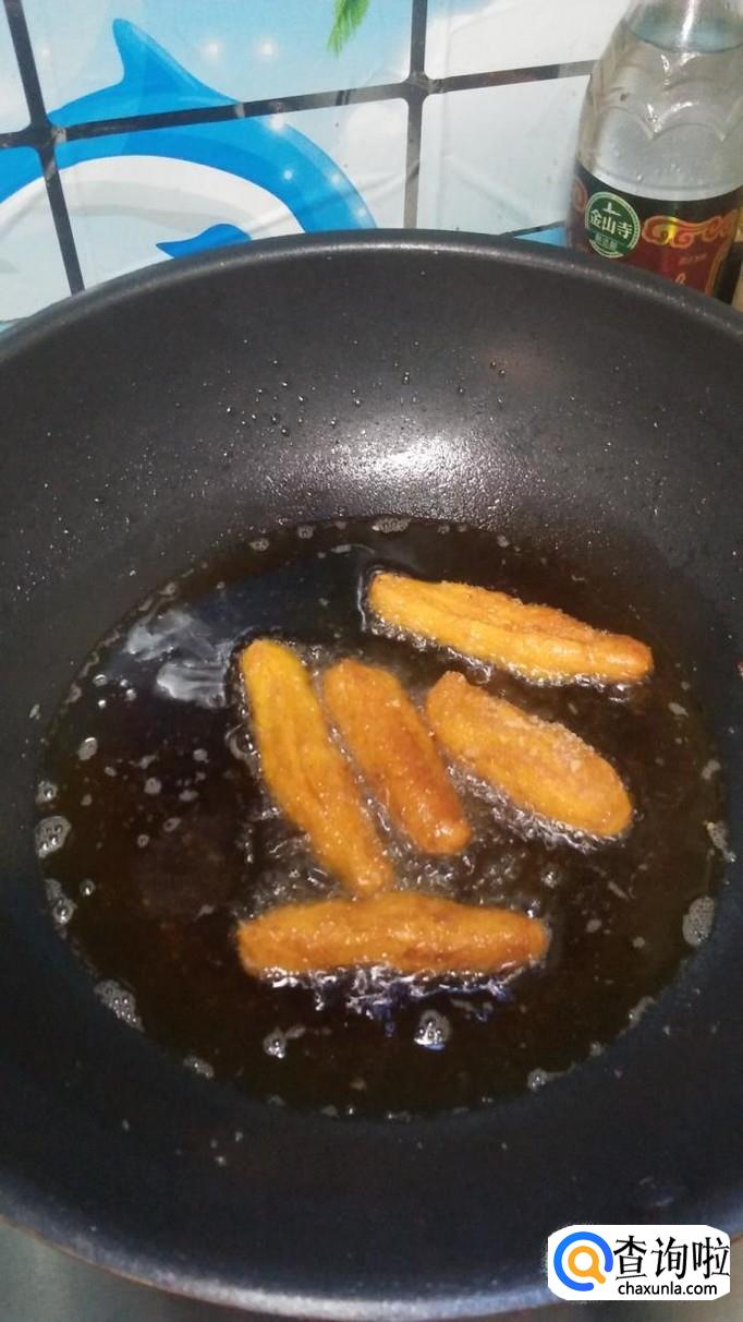 炸至金黄酥脆,捞出沥油。注意,火候不能太大,可以用笊篱搅拌一下,这样容易受热均匀。