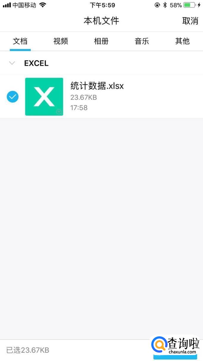 最后选择我们需要发送的文档,并点击发送就可以了。