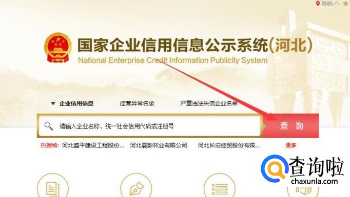 以河北省为例,选中河北省,主页面就变成“国家企业信用信息公示系统(河北)”,如图所示。
