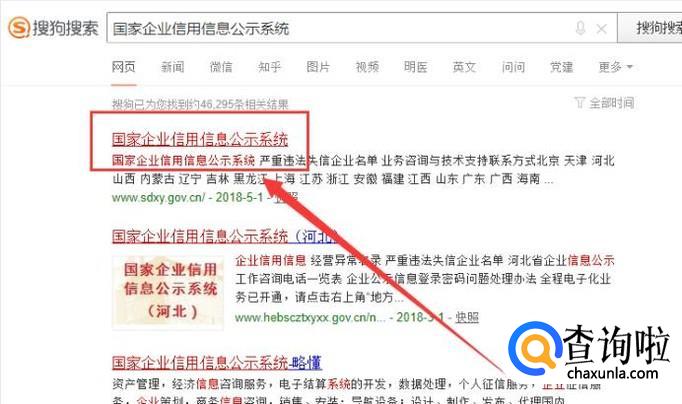 打开搜狗搜索,搜索“国家企业信用信息公示系统”,点击并进入。