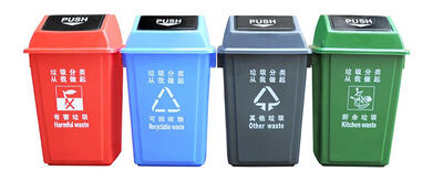 四种垃圾桶,它们分别是可回收垃圾、厨余垃圾、有害垃圾和其他垃圾。可回收垃圾主要包括废纸、塑料、玻璃、金属和布料五大类;厨余垃圾(上海称湿垃圾)包括剩菜剩饭、骨头、菜根菜叶、果皮等食品类废物;有害垃圾含有对人体健康有害的重金属、有毒的物质或者对环境造成现实危害或者潜在危害的废弃物。其他垃圾(上海称干垃圾)包括砖瓦陶瓷、渣土、卫生间废纸、纸巾等难以回收的废弃物及尘土、食品袋(盒)。