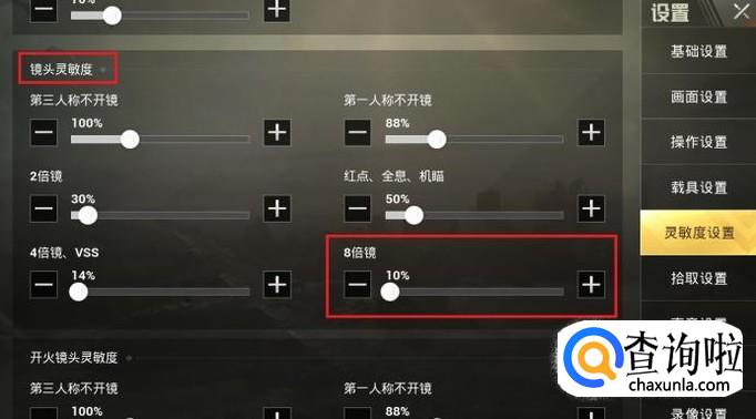 可以在“镜头灵敏度”和“开火镜头灵敏度”中分别找到8倍镜的灵敏度调节选项。