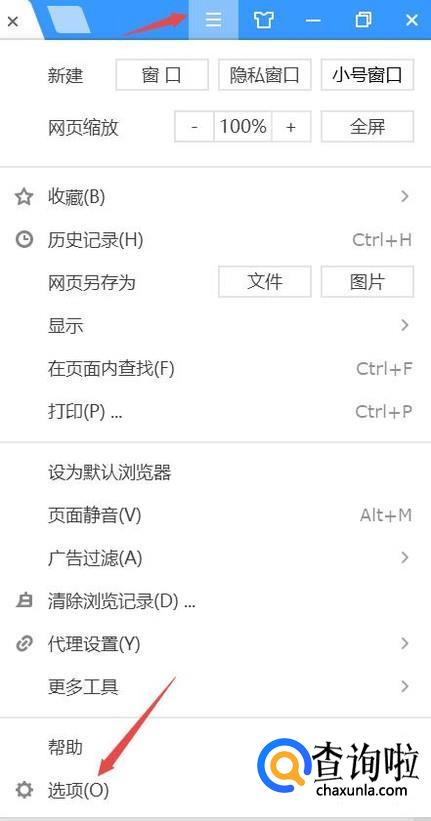 打开浏览器,找到浏览器中的选项功能,点击进入。