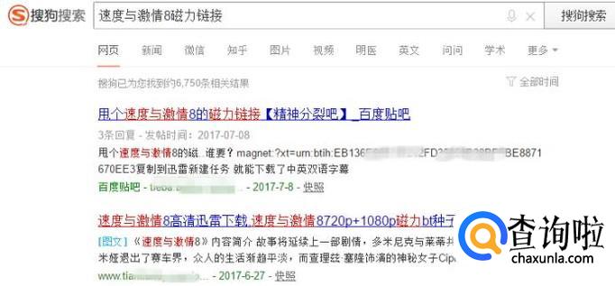 首先我们打开浏览器,搜索速度与激情8磁力链接,然后复制磁力链接