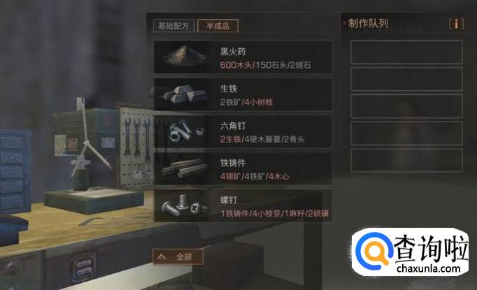 进入装备制作界面后,我们会看到两个制作分类,应该是基础配方,一个是半成品,生铁作为材料是属于半成品的,点击半成品就可以看到关于生铁的制作了。
