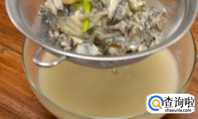 之后热锅起油,煸炒鱼骨和鱼头至完全变色,加少许料酒去腥,然后加水煮至沸腾。熬十分钟至汤浓,关火滤渣。