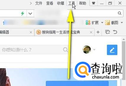 再看网页右上角这里, 如下图所示,点击:工具