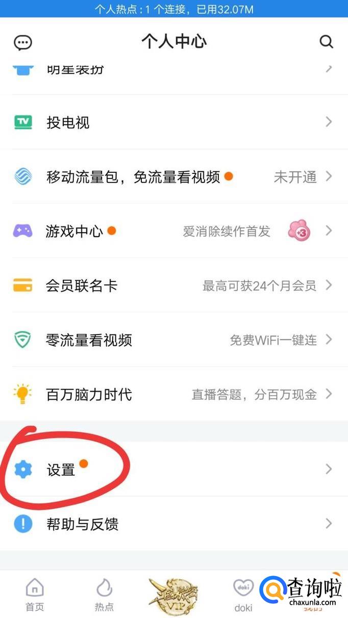 打开个人中心后,我们滑动屏幕,找到"设置",然后将其点开。