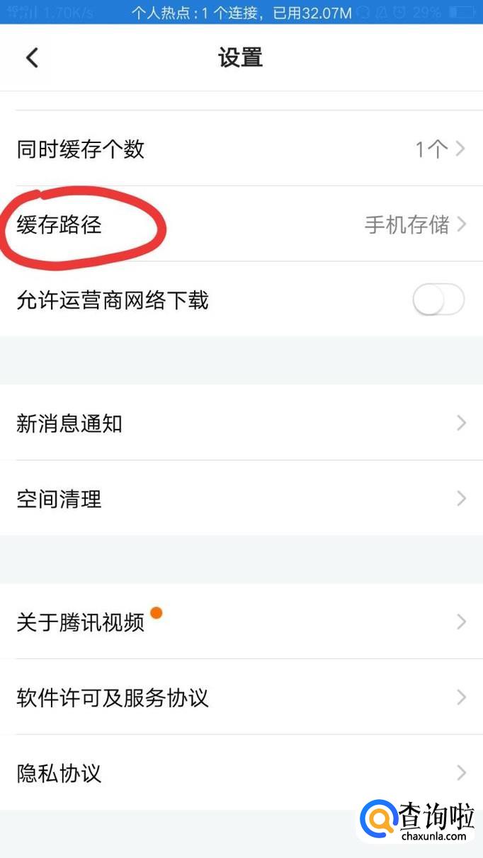 在设置界面,我们可以看到缓存路径选项,点开就可以设置视频的缓存路径,如果手机里有插sd卡,就可以将缓存的视频放在sd卡里面。