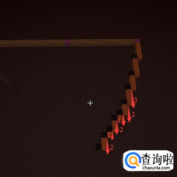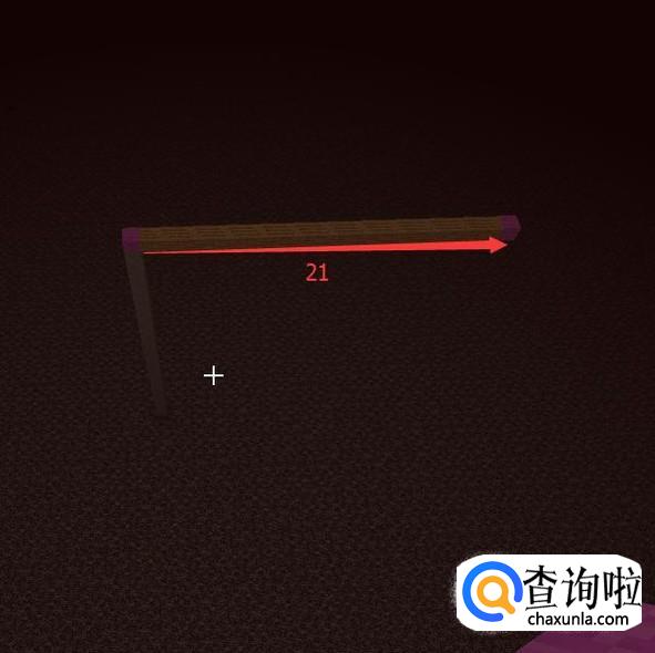 然后再提高一格,第26格高用【紫色羊毛】(中心点)表示,然后向一个方向放【木头】长21格。第21格用【紫色羊毛】替换掉。