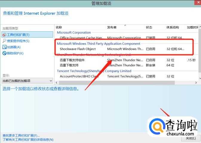 就可以看到“Shockwave Flash Object已启用”,最后点击“关闭”,这样就可以了。