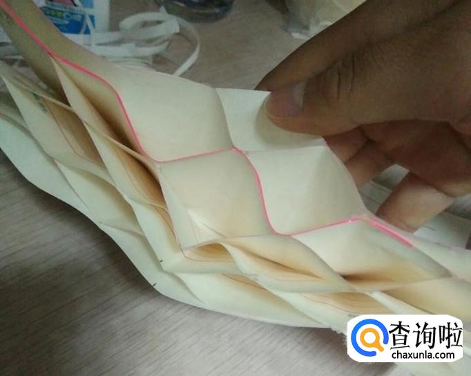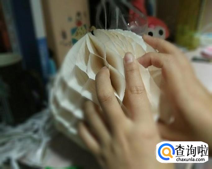 最后一步,像这样把纸的两面合起来,一个蜂窝灯笼就做好了。