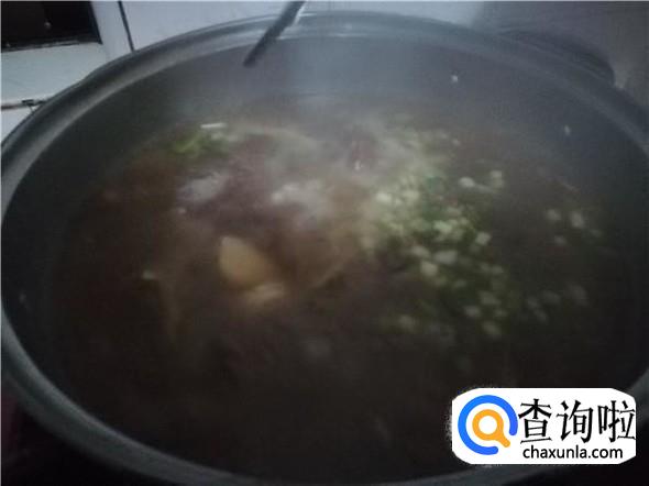 当水再次煮到沸腾,如果喜欢吃比较粘稠的牛肉羹的人可以倒入半碗生粉水,但是喵嗷家不喜欢粘稠的所以就不倒入了,就只倒入葱花和盐。