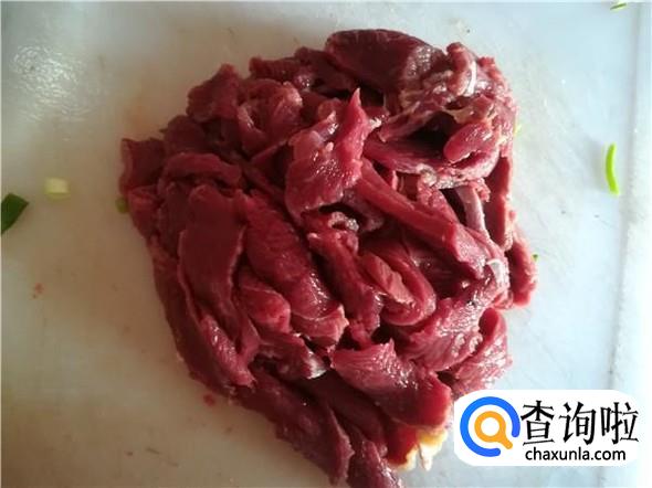 将牛肉切成片状,不要切太大或太厚。