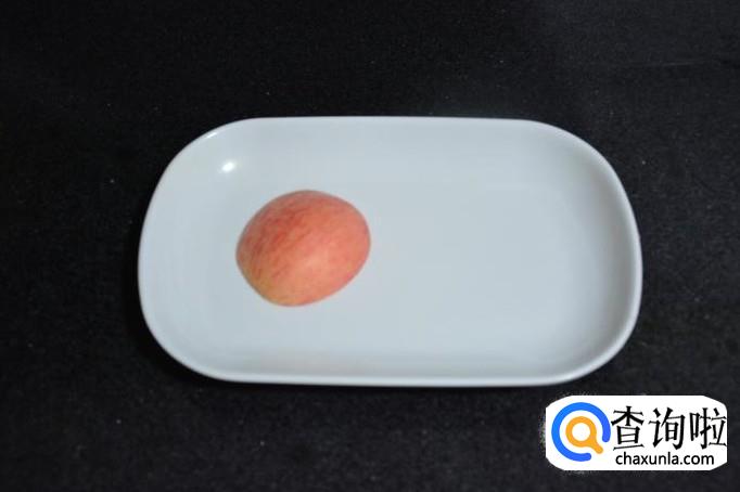 根据果盘大小,选择合适大小的螃蟹水果壳尺寸,自苹果一侧竖切一刀,螃蟹壳就完成了。
