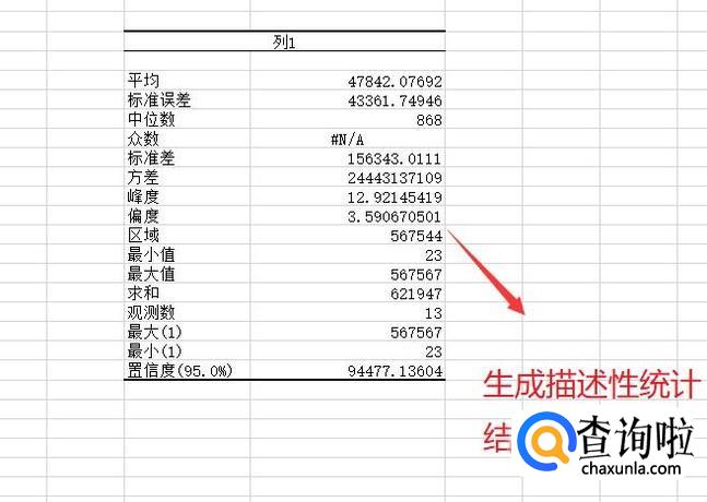 最后我们就可以看到Excel会自动生成描述性统计分析结果了,如下图所示