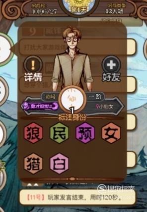 我们以12人局为例子,12人局中包含3个“狼人”身份、5个“村民”身份、1个“预言家”身份、1个“女巫”身份、1个“猎人”身份、1个“白痴”身份。当游戏开局后,每个人会抽到一个身份牌,“狼人”就在当中,需要找到他们。