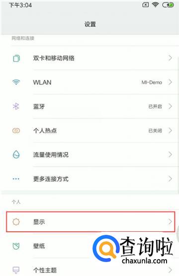 进入设置页面后,下拉页面,找到【显示】选项并点击进入