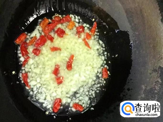 2:锅内倒入干红辣椒段和蒜末炒的时候,火候要小一点,不然很容易糊。