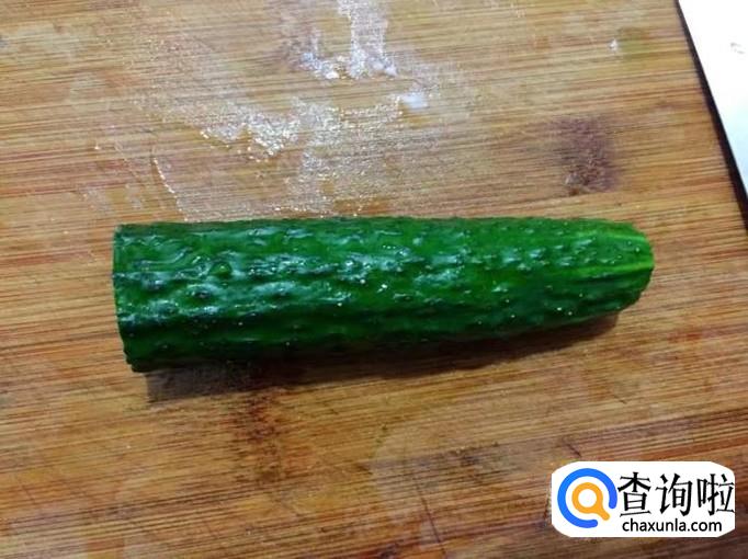 准备一根新鲜的青瓜用清水清洗干净后,切掉两头一点就可以了,然后一分为二切成两段。