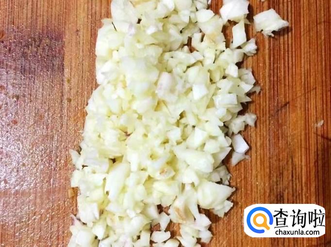 蒜去干净外皮用清水洗一下,切碎成蒜末。