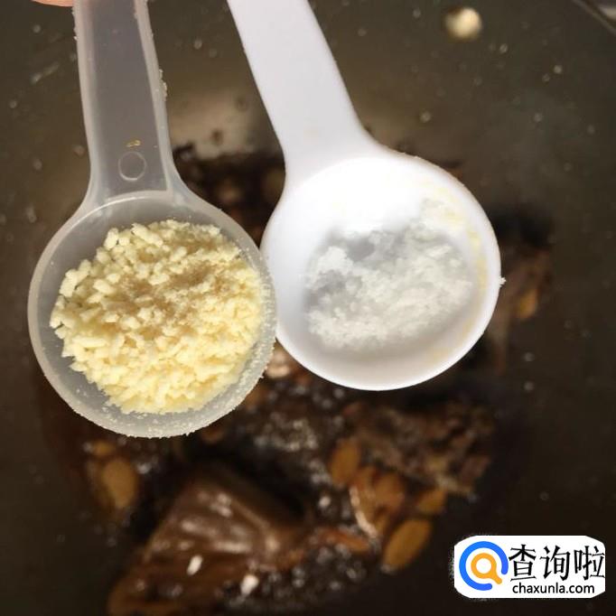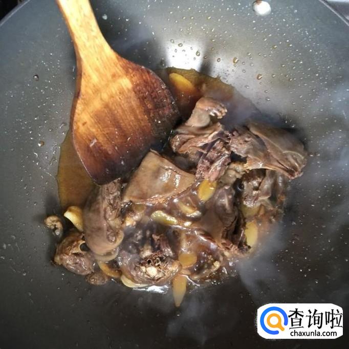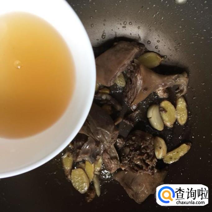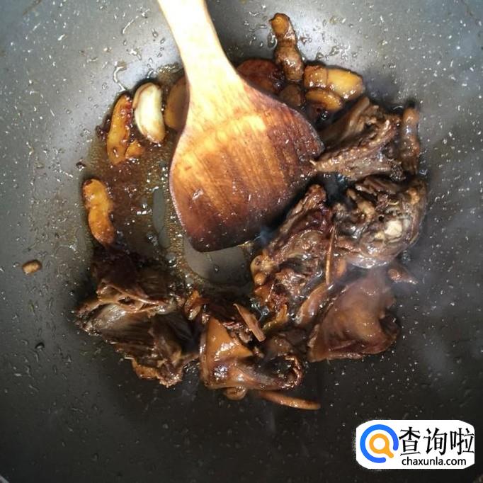 然后往锅中加入适量的老酒,翻炒两分钟。