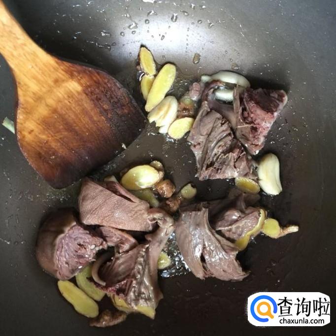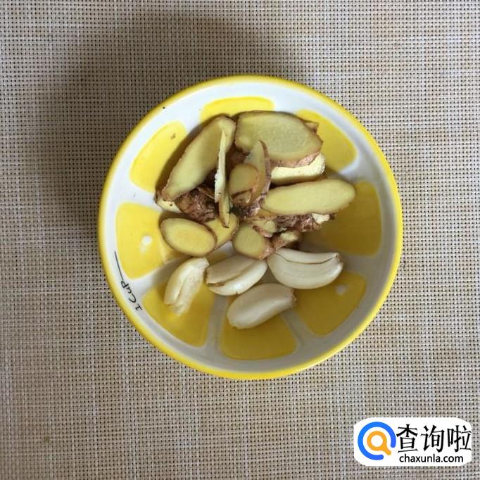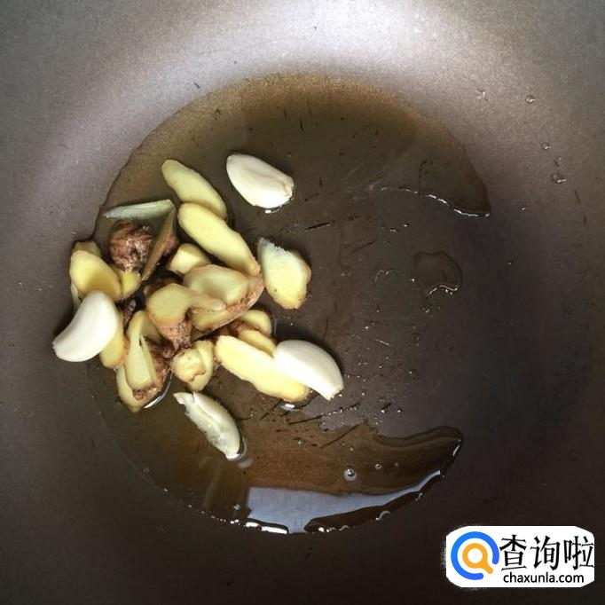 首先将生姜洗净切成姜片,蒜头剥皮,然后往锅中放入适量的食用油,待油冒烟倒入姜片和蒜头爆香。