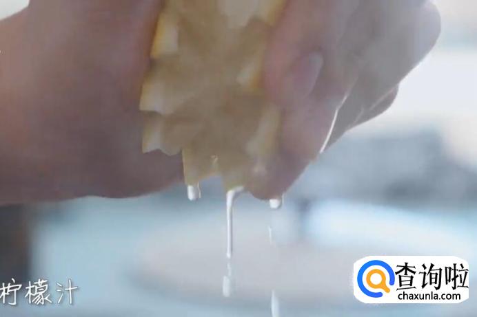 开盖,挤入柠檬汁,加适量盐、胡椒,搅拌均匀。