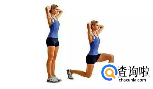 两脚成弓箭步,前脚脚趾冲前,后脚脚跟离地脚趾冲前,上身直立。后膝盖慢慢下沉,再缓慢上升至起始姿态。重复10-15次,换右腿。不仅可以锻炼大腿、小腿、臀部、腹部和背部的肌肉,还可以锻炼膝关节,缓解膝关节的压力和紧张。
