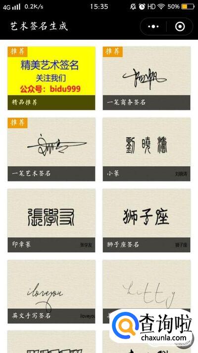微信里面有很多款签名设计的小程序,但是有一些是会收取费用的,但是这一个小程序是免费的喔,可以放心使用。