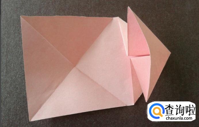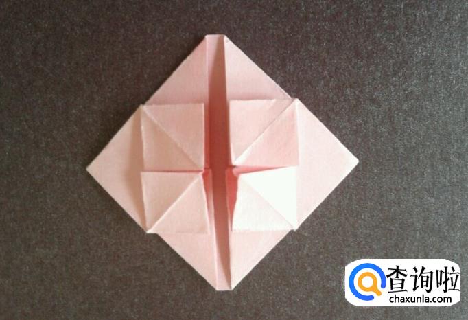 把小正方形的两个边折成图片所示那样,一定要每个都与相应的线重合。