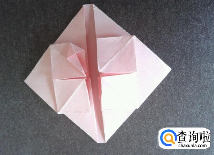 这时会发现中间会有一个缝隙,把它对折,然后将两边的小角折藏进去,然后将上面的叠下去就大功告成。