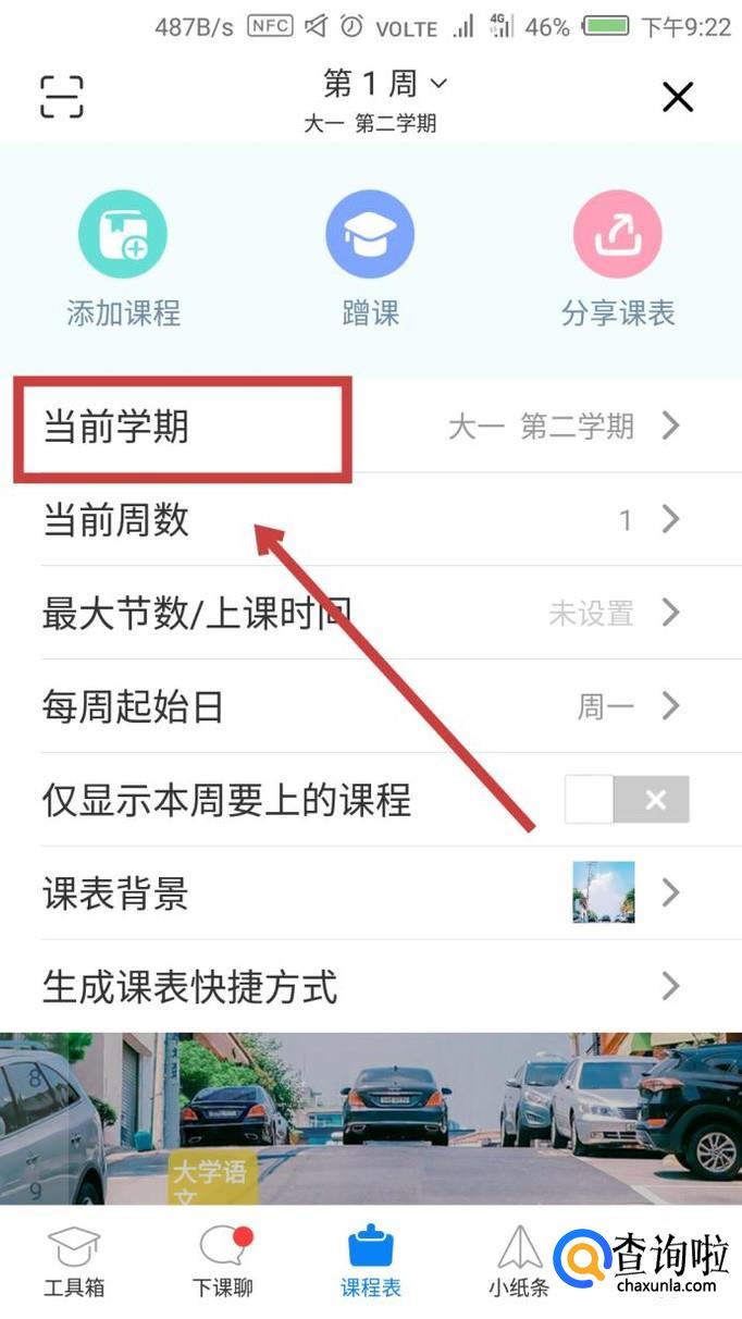 然后在界面上方找到“当前学期”,点击进入选择一下你目前所处的学期,如图所示。