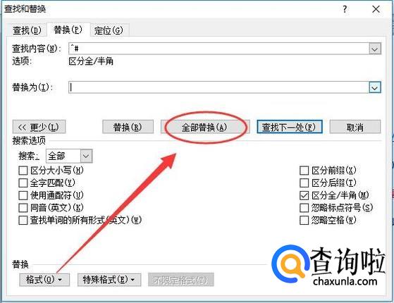 打开查找与替换的对话框,如图所示。