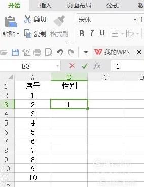 当我们在选定区域输入1(或者2),鼠标点击任意一处,奇迹发生了(刚刚输入1的地方变成了男),同理,如果想输入“女”直接按2就可以了。