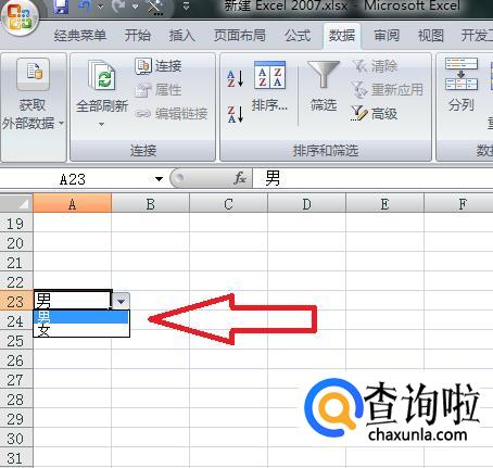 然后直接点击下拉按钮,可以直接选择男或女。这样就可以在EXCEL中快速输入男女性别。