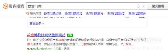 故宫只能网络购票了,所以在搜狗搜索里输入故宫门票等关键字,然后找到官网。